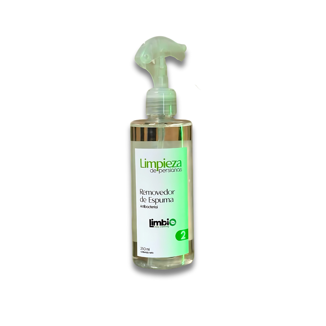 Solución antibacterial que disuelve y retira los residuos de jabón, dejando la persiana desinfectada y con aroma fresco. El complemento perfecto del Paso 1.