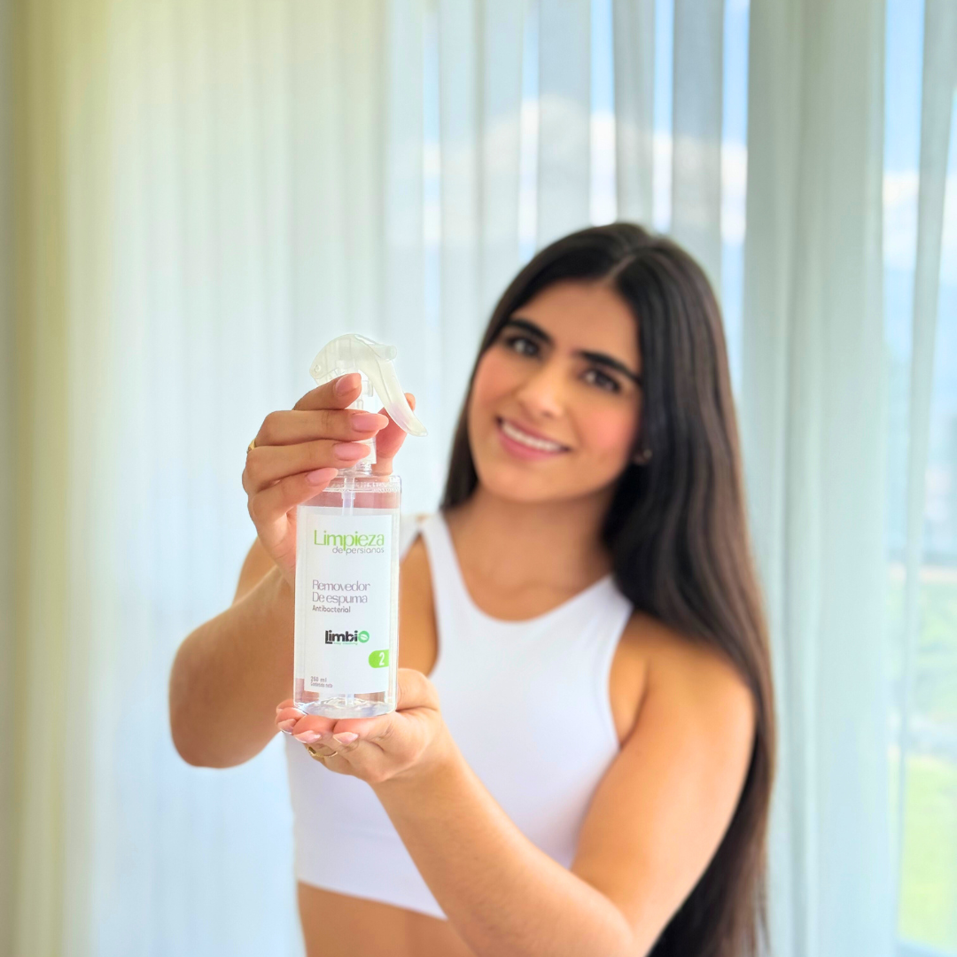Paso 2 – Removedor de Espuma Antibacterial (250 ml) – INCI:Aqua, Alcohol, Methylhydroxypropyl Cellulose, Glycerin, Triethanolamine, Copper Sulfate.(Reg. NSOC99930-20CO).